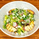 €12,80 Refreshing Green SaladRefreshing green salad with grilled peaches , walnuts , radish , fresh herbs , xinomyzithra cheese and cider vinegar. €15,50 Potato Salad with smoked EelPotato salad with smoked eel , pickled onions , cherry tomatoes , chives , horseradish mayonnaise , capers , Cretan graviera cheese , buckwheat and cider vinaigrette. €10.80 Greek SaladTomatoCucumberPicklesRock SamphireGreen PepperOnionOlivesFresh Oregano‘Seliano’ CheeseDakos (Barley Rusk)Olive oil . HVGSFNF